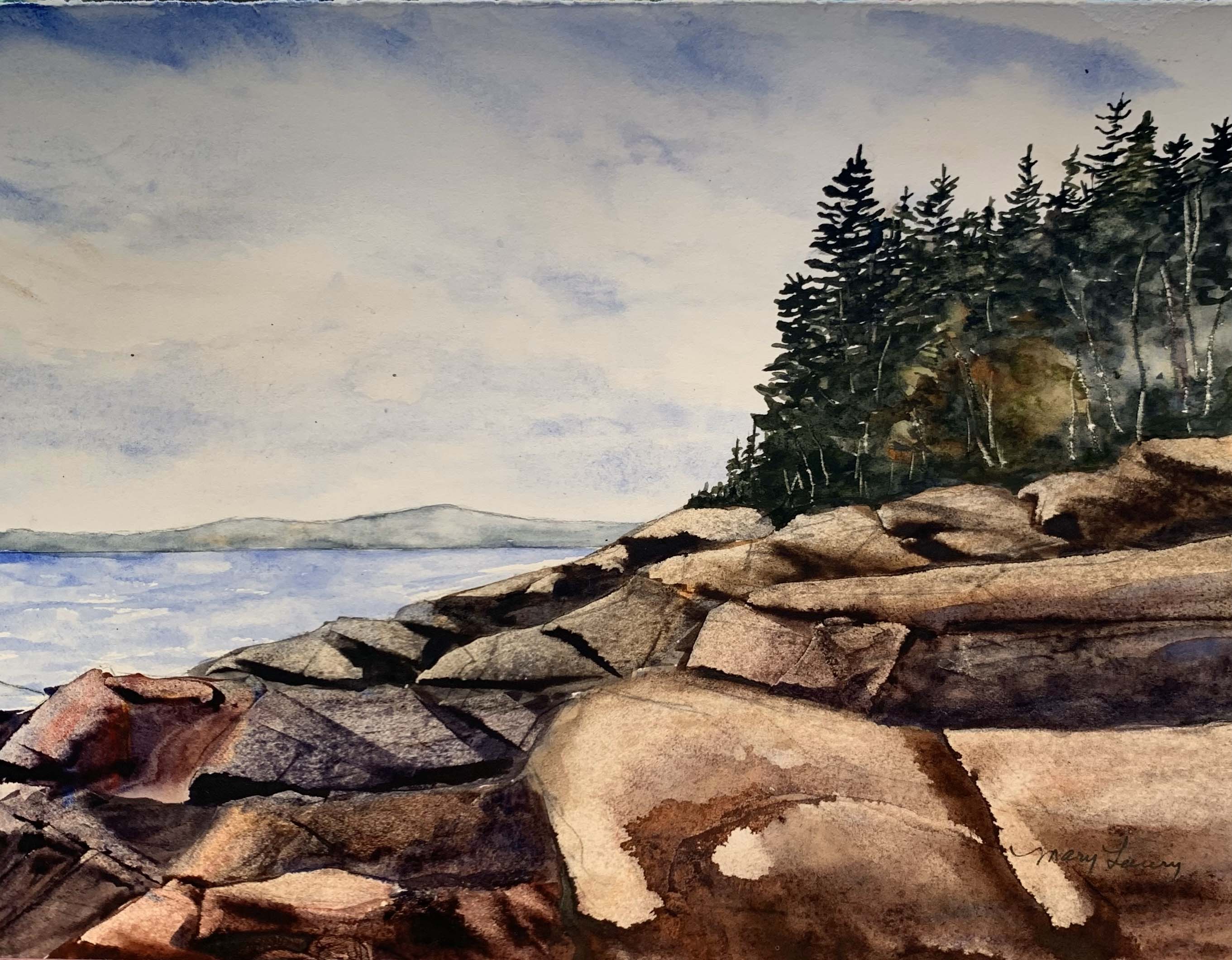 Mary Laury is a coastal Maine-based artist whose work is rooted in a deep love of place and a lifelong commitment to creative exploration. Working primarily in watercolor, she is drawn to Maine's landscape—its rocky shores, blueberry barrens, garden blooms, and the watchful presence of gulls along the coast. Mary served as Executive Director of Schoodic Arts for All. Now in a vibrant encore chapter of her career, Mary leads Acadian Arts Retreats and teaches throughout the region. In addition to watercolor, Mary is also a pottery artist.